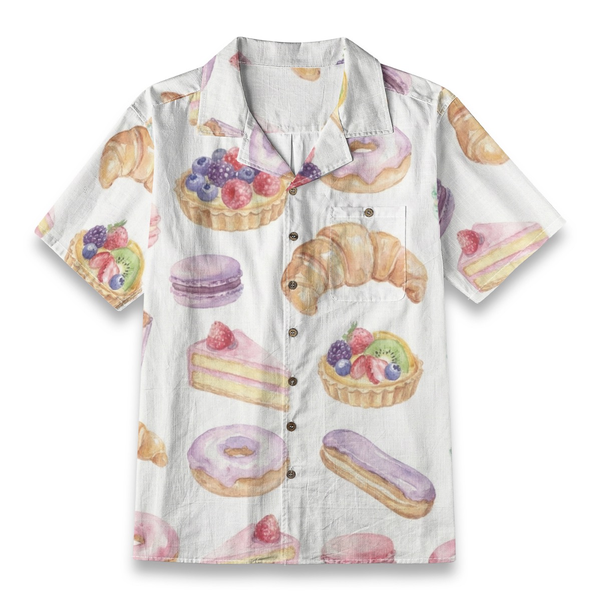 Watercolor French Pastry & Dessert Pattern Shirt – Food Hawaiian Shirt